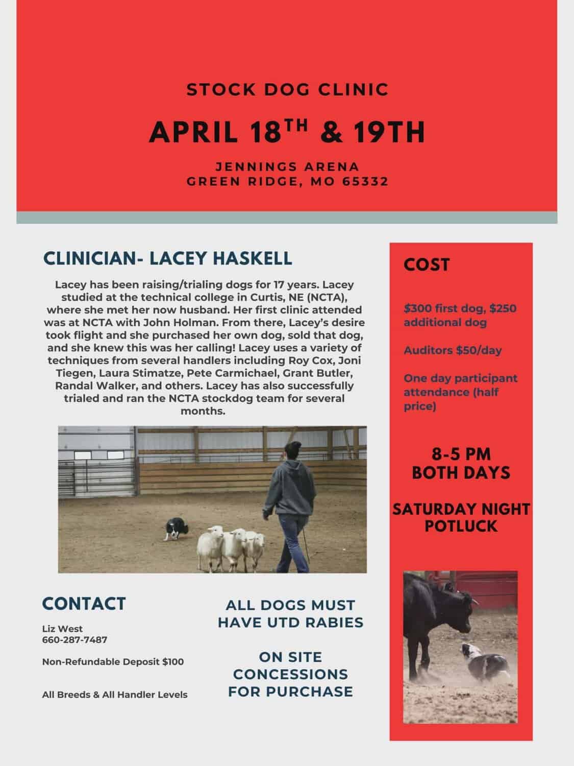 Lacey Haskell has been raising and trialing dogs for 17 years. She studied at the technical college in Curtis, NE (NCTA), where she met her husband. Her first clinic attended was with John Holman at NCTA, which sparked her passion for training. Since then, Lacey has owned and trained multiple dogs and found her true calling as a clinician.