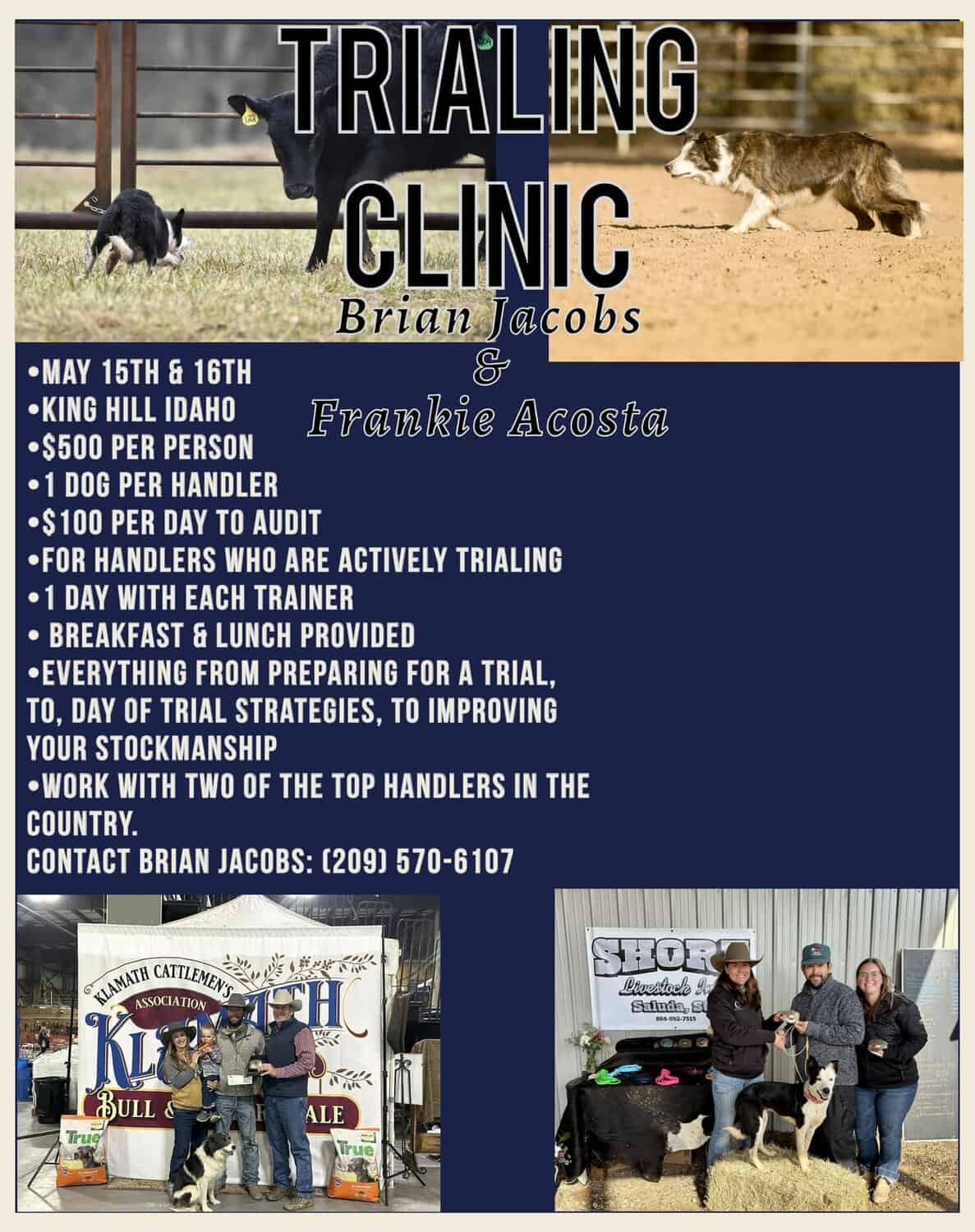 Cattle trialing clinic followed by a two day cattle trial at Why Worry Ranch. This clinic is for handlers who are actively trialing. 1 day with each trainer. Everything from preparing for a trial to day of trial strategies to improving your stockmanship.