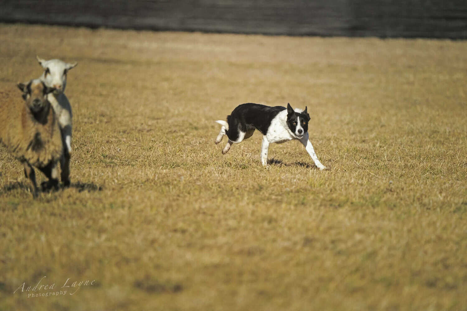 Last summer she was working on a feedlot and gathering cattle off the forest. She’s best suited for sheep but will work cattle. This fall she raised a beautiful litter of pups and is back in shape starting to trial again.