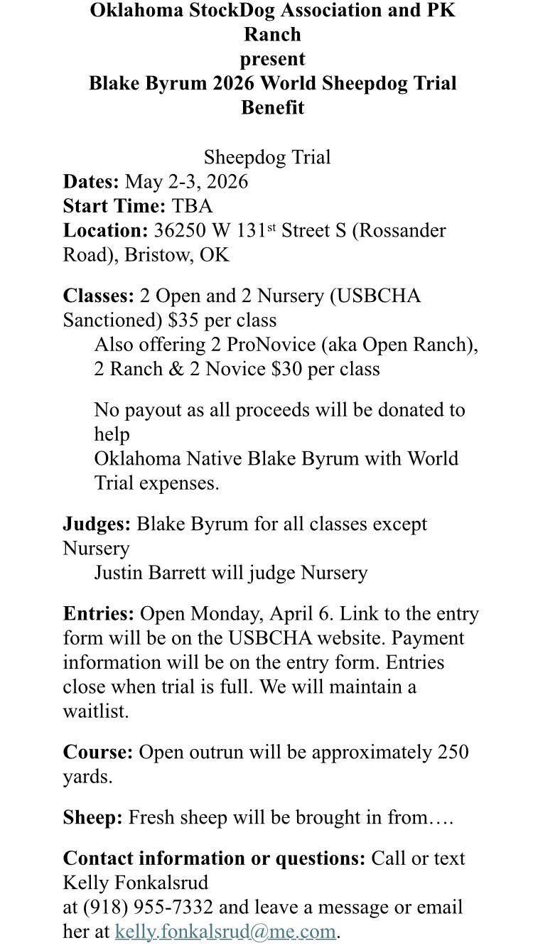 Blake Byrum 2026 World Sheepdog Trial Benefit