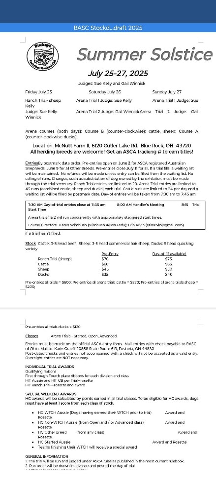 Mail-in Entry Contact: Karin Graeff, 20856 State Route 613, Fostoria, OH 44830